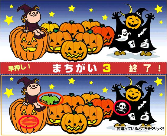 2つの絵の違いをさがすゲーム「まちがい3 ハロウィン編 」です。